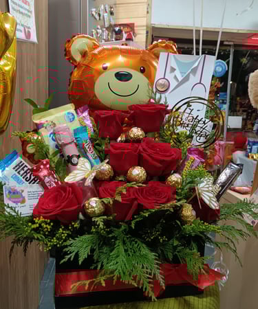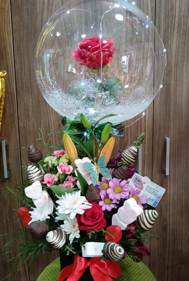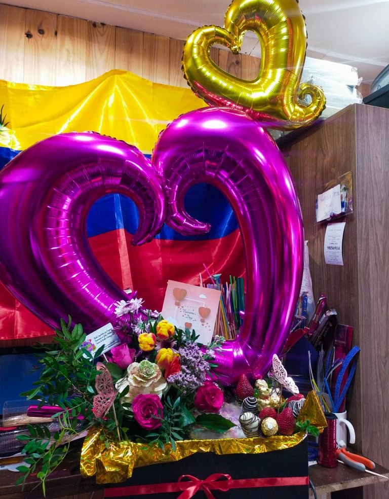 Regalos con flores, globos personalizados y deliciosos dulces para cualquier ocasión especial.